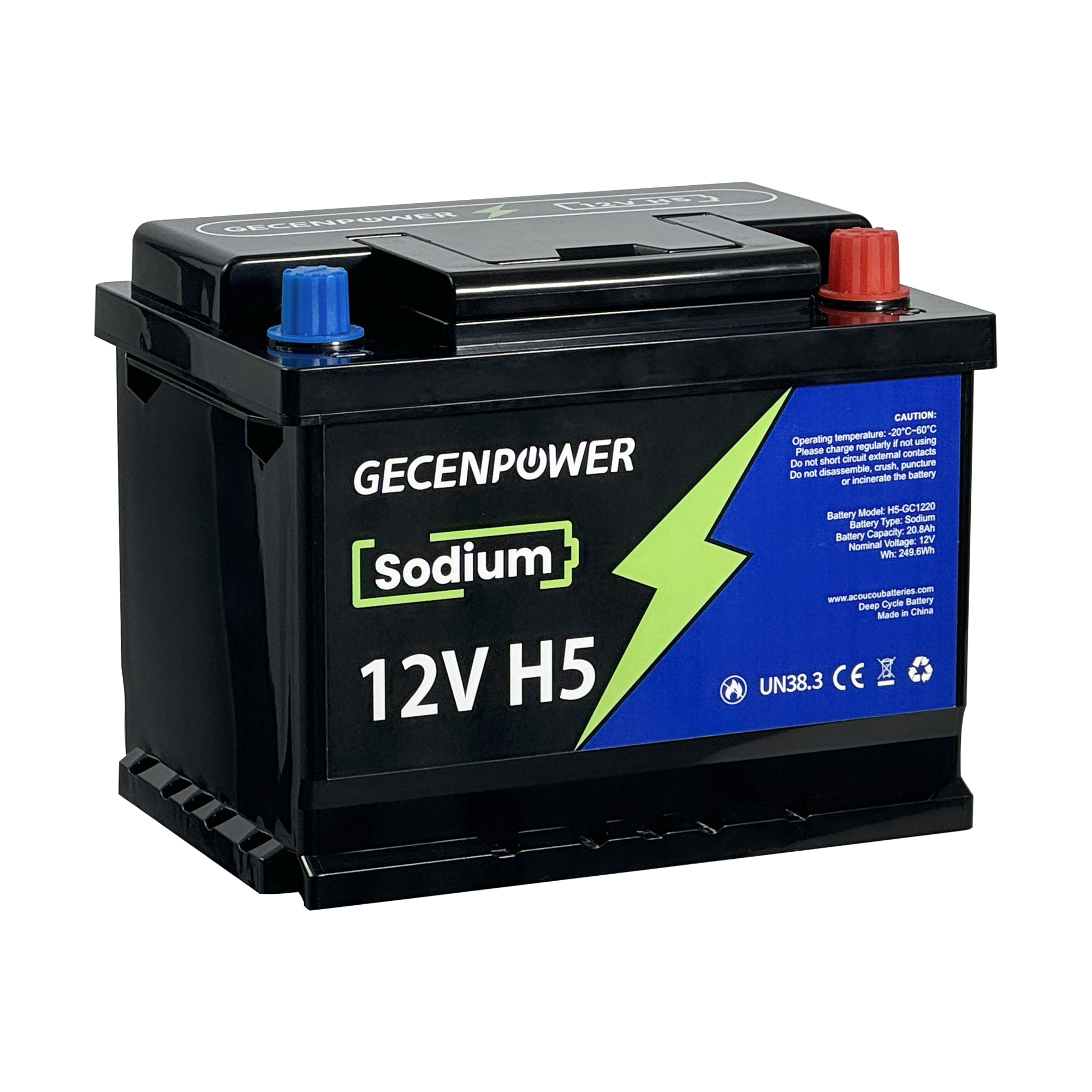 Gecenpower 12V 20.8Ah Sodium Ion Battery Built-in BMS Deep Cycle for Light Trucks, RVs