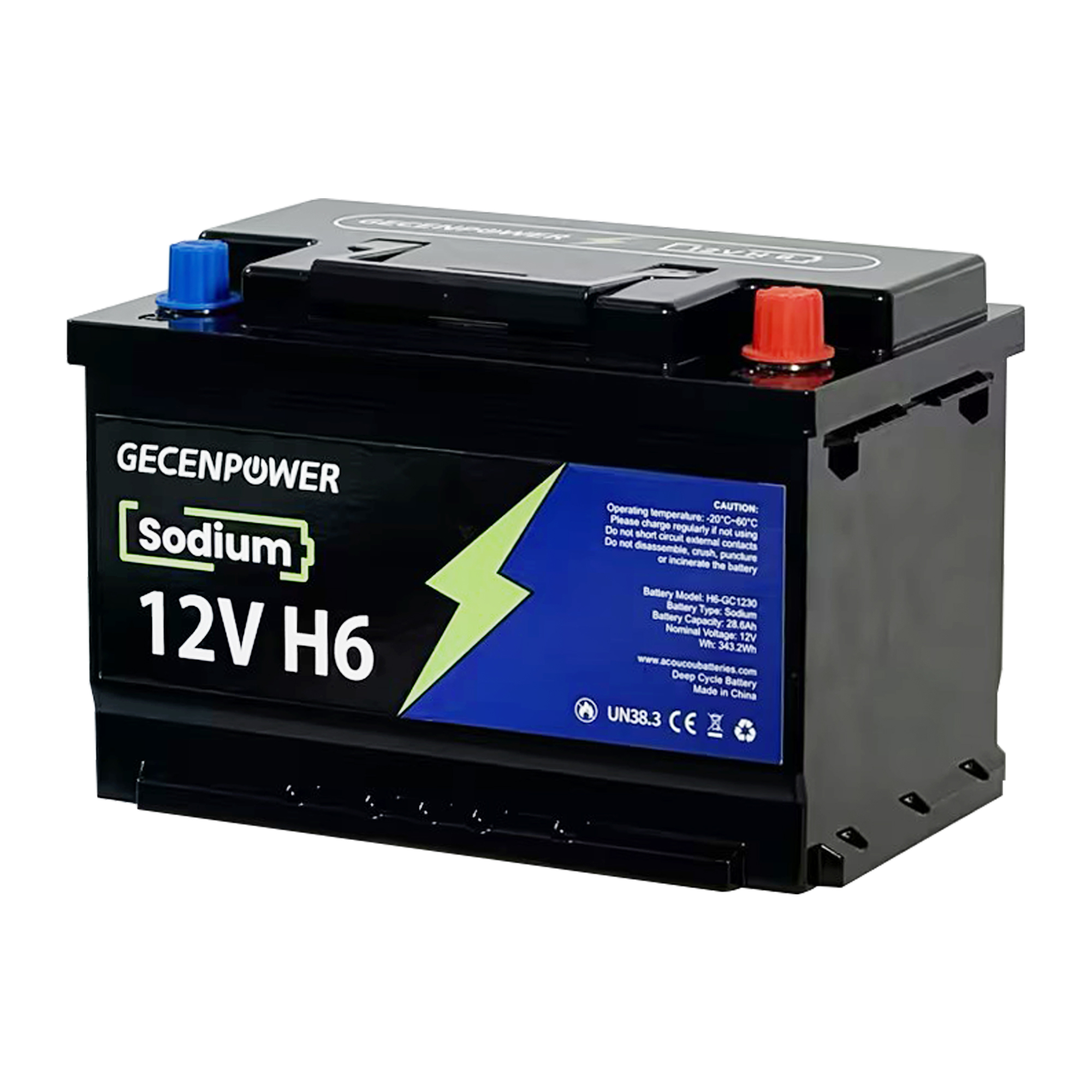 Gecenpower 12V 28.6Ah Sodium Ion Battery Built-in BMS Deep Cycle for Light Trucks, RVs